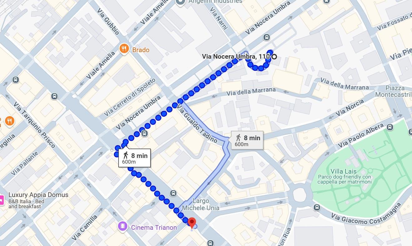 Tramite Via Nocera Umbra e Via Tuscolana 500 mt a 6 minuti